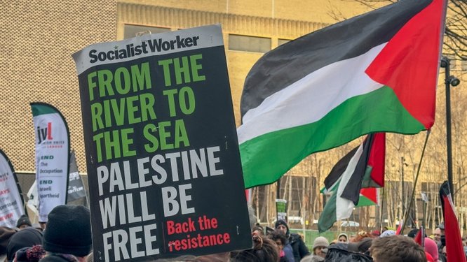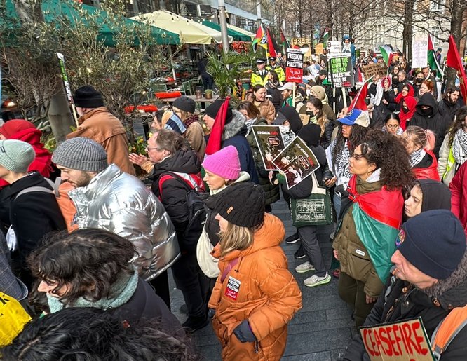 Carrying banners that read: "BAE company is profiting from the genocide in Gaza", "Stop the massacre in Gaza", "Urgent ceasefire now," demonstrators gathered in front of the company's building in central London and demanded it stop exporting arms to Israel.