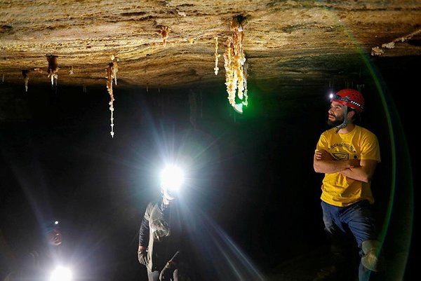 "What's unique about this cave, as opposed to other salt caves in the world, is that it's the longest in the world," Langford said, resting in a chamber of the cave dubbed the "Wedding Hall" for its salt stalactites.