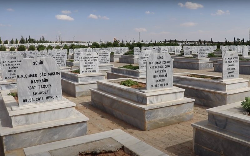According to footage obtained by Anadolu Agency, the tombstones of several YPG/PKK members at a cemetery in the city of Ayn al-Arab (Kobani) show that they died at age 14 to 17. The slain YPG/PKK members were born in the late 1990s and died in the mid-2010s.