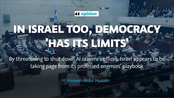 Washington-based political analyst Hussain Abdul Hussain penned an article entitled 'In Israel too, democracy has its limits' on Israel decision for shutting up Al Jazeera office in Jerusalem.
