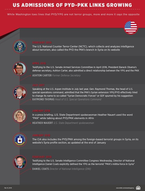 U.S. support for the PYD/PKK terrorist group continues to raise tensions in Turkish-American relations, even while remarks from U.S. officials effectively admit what U.S. leaders avoid saying: that the YPG, the armed wing of the terrorist PYD, is the Syrian branch of terrorist group PKK.