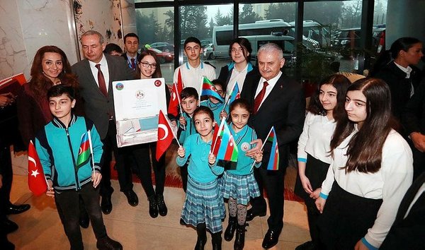 Prime Minister Binali Yıldırım expressed his gratitude to the students of the Turkic World Research Foundation's (TDAV) Ataturk Secondary School.
