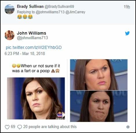 Some media outlets also linked Carrey's art to Sanders. Breitbart ran a story about the image under the headline, "Jim Carrey Attacks 'So-Called Christian' Sarah Huckabee Sanders with Grotesque Portrait." The Wrap used the headline, "Jim Carrey Painted a Sarah Huckabee Sanders Portrait, and It's Not a Pretty Picture (Photo)."