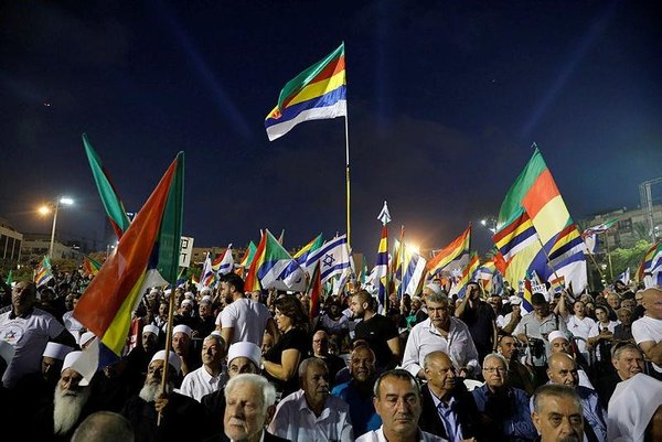 Tens of thousands of Israeli Druze and their supporters rallied in central Tel Aviv Saturday to protest a new law they say makes them second-class citizens, an AFP reporter said.