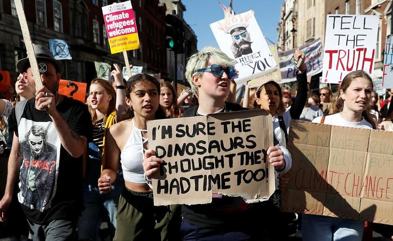 "We are skipping our lessons to teach you one," read a placard carried by a student in London.