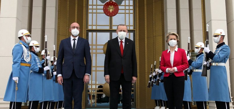 Recep Tayyip Erdoğan met with Charles Michel, head of the EU Council, and Ursula von der Leyen, head of the EU Commission, at the presidential complex in the capital Ankara.