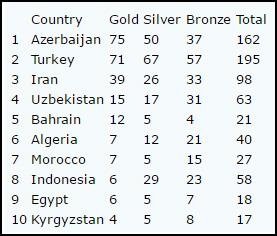 Azerbaijan ranked first with 75 gold, 50 silver and 37 bronze medals.
