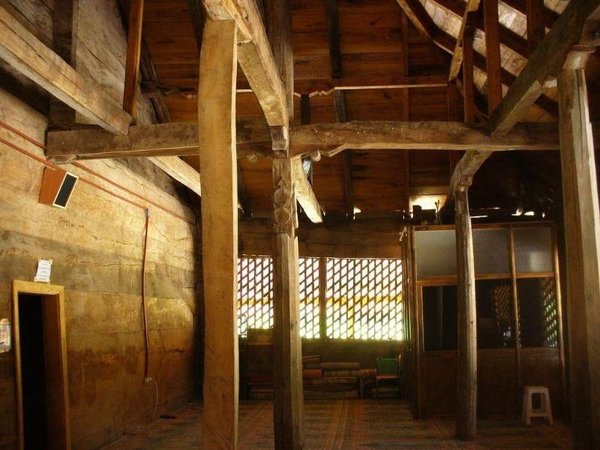 The builders used oaks with a diameter of over 1 meter, cutting them into planks and columns.