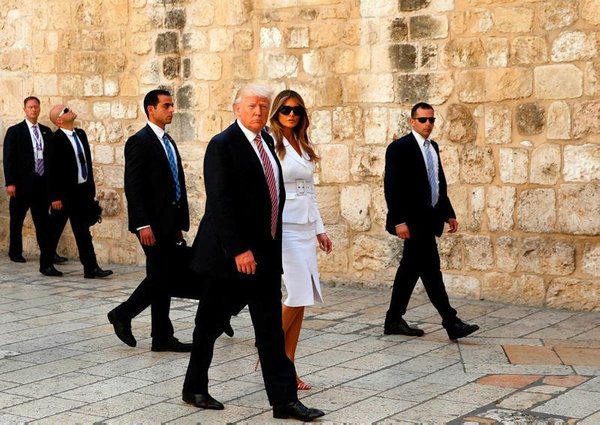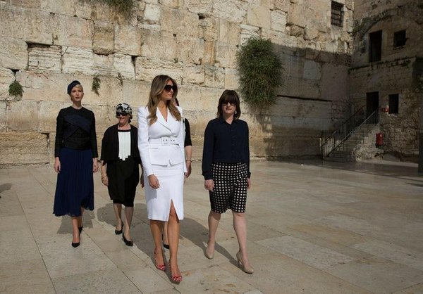 * Ivanka Trump (L), assistant and daughter of US President Donald J. Trump, US First Lady Melania Trump (L-3) and others visit the Western Wall, Judaism's holiest prayer site, in Jerusalem's Old City, 22 May 2017. President Trump and his contingent arrived for a 28-hour visit to Israel and the Palestinian Authority areas on his first foreign trip since taking office in January. (EPA)