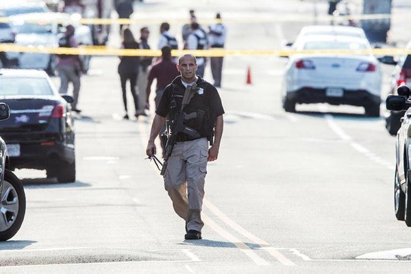 * First responders close a street near the scene of a shooting in Alexandria, Virginia, USA, 14 June 2017. Republican Representative Steve Scalise and two Capitol police officers were injured, according to media reports. (EPA)