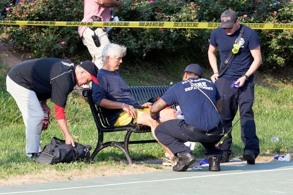 * First responders on the scene following a shooting in Alexandria, Virginia, USA, 14 June 2017. The Republican House majority whip Steve Scalise and at least four others have been shot shot at a congressional baseball game practice session, according to media reports. (EPA)
