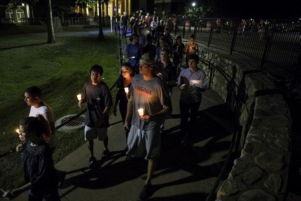 * University of Virginia students, faculty and residents attend a candle light march across grounds in Charlottesville, Va., Wednesday, Aug. 16, 2017 (AP)