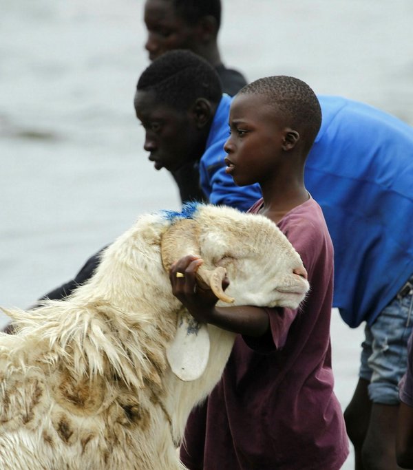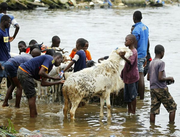 * Child wash sheep at the city cattle market before Eid al-Adha in Abidjan, Ivory Coast, 29 August 2017. (EPA Photo)