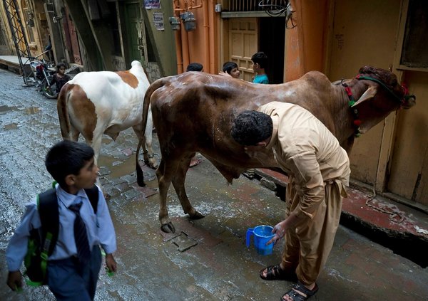 * A man washes his cattle ahead of the Muslim Eid al-Adha holiday in Rawalpindi, Pakistan, Thursday, Aug. 31, 2017. (AP Photo)