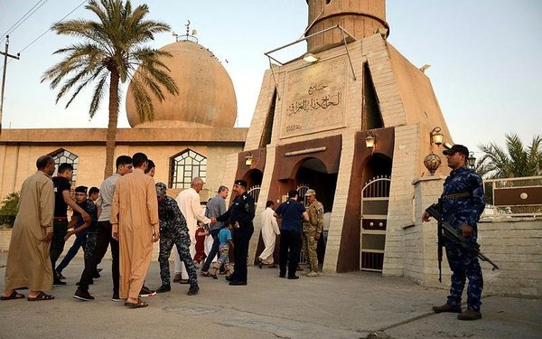 * Iraqi policemen stand guard outside a mosque during prayers marking the beginning of Eid al-Adha in Mosul city, northern Iraq (EPA Photo)