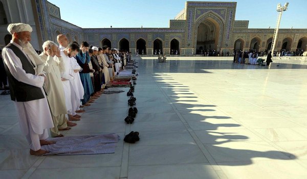 * Afghans offer Eid al-Adha prayers in Herat, Afghanistan, 01 September 2017.