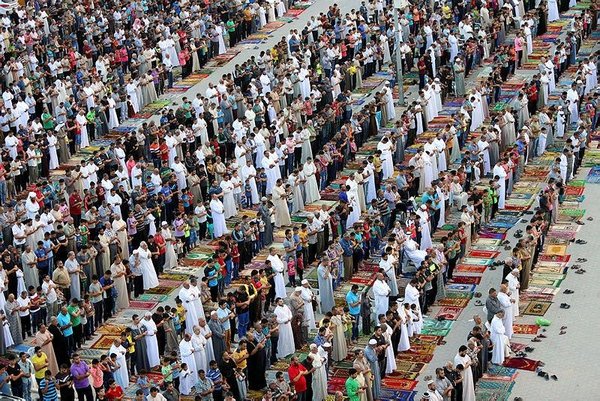 The festival starts with prayers at dawn when over a billion Muslims fill mosques across the globe.