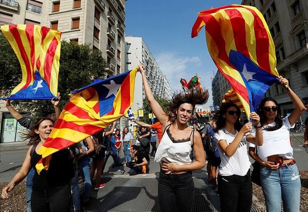 Demonstrators including students and young families filled the streets in the regional capital Barcelona waving red- and yellow-striped Catalan flags.
