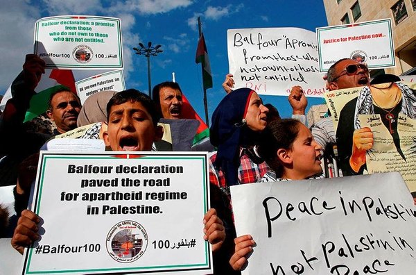 "Palestinians demand that Britain apologize for the tragedy it brought down on the Palestinian people as a result of this disastrous promise," he said.