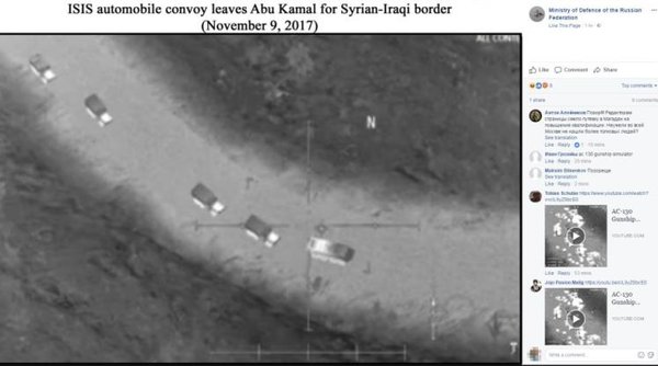 The ministry's official account said the black-and-white images were taken on November 9 near the Syria-Iraq border and provided "irrefutable proof that the US is providing cover to Daesh combat units".