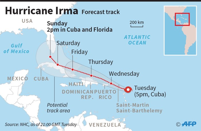 Officials warned people to seek protection from Irma's "onslaught" in a statement that closed with: "May God protect us all."