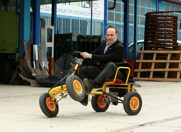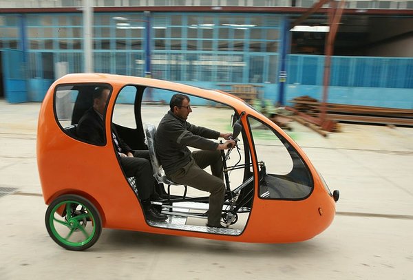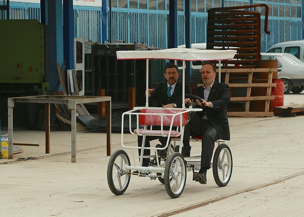 "Our latest product is the electrical bicycle taxi. It works by human power, but when it is not sufficient, the electric engine activates and you can go further distances and climb ramps," Şengün said.