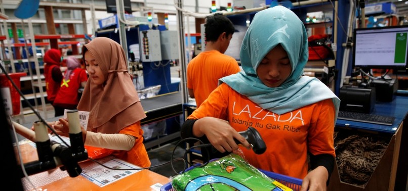 In a warehouse on the outskirts of Indonesia's capital, supervisors at e-commerce company Lazada use bikes or electric scooters to zip around a floor the size of four soccer fields, where up to 3,000 staff pack and dispatch goods around the clock.