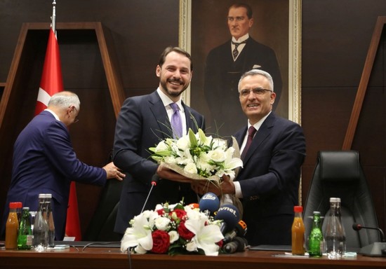 Turkey's first Treasury and Finance Minister Berat Albayrak who took office Tuesday in a ceremony in Ankara from the former Finance Minister Naci Ağbal and former Deputy Prime Minister Mehmet Şimşek, who was in charge of the Treasury in the previous system, vowed that Turkey will be more integrated with global markets from the East to the West.