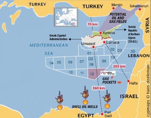 The Greek Cypriot's 2010 maritime deal with Israel paved the way for Cyprus to press on with a drilling program at the Aphrodite gas field in block 12 of its exploratory drilling zone, which it had licensed to Noble Energy in 2008.
