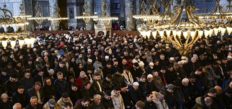 The congregation listens quietly to the imam.