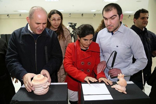 The show at the city's art center also features work by Altin. Guests at the opening included local blind people who were invited to handle the pieces.