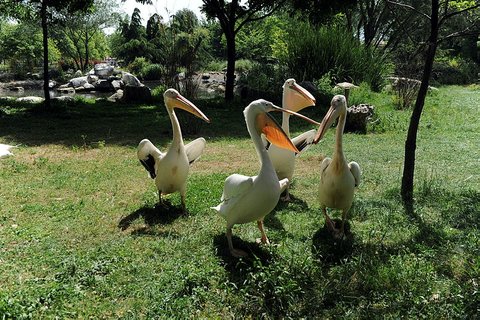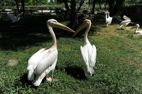 The great white pelican, which breeds throughout southeastern Europe, Asia and Africa, is one of the largest pelican species, measuring 140 to 180 cm (55 to 71 in) in length with a pink and yellow bill 29 to 47 cm (11 to 18.5 in) long. It is listed as a species of least concern on the IUCN Red List of Endangered Species.