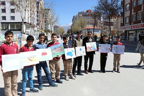The Van province saw 11,000 paintings belong to students from 100 schools exhibited in the 7-kilometer (4-mile) Iskele street in the center of the city.