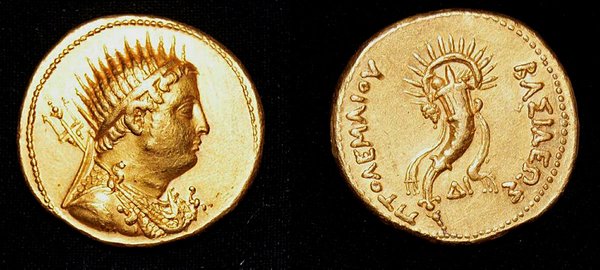 It says archaeologists found a gold coin depicting King Ptolemy III, who ruled Egypt in the 3rd century B.C. and was an ancestor of the famed Cleopatra. It says the coin was made during the reign of King Ptolemy IV in memory of his father.