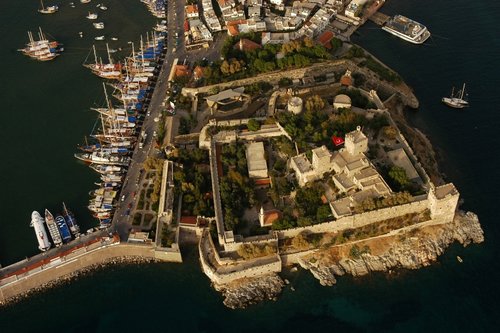 The castle is situated in Turkey's southwestern port town of Bodrum, where the Mediterranean Sea meets the Aegean.
