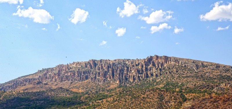 When you arrive at the Çemlik district of Diyarbakır, a mountain welcomes you with all its glory, stretching from the ground to the skies. At first glance, the mountain looks like there are people standing on it, stone-like creatures, watching you. However, when you take a second look, you understand that the stones are nothing more than rock formations but once the mountain gets hold of you with its magnificence, you cannot shake the feeling that there are actually eyes watching you as you climb. Located 4 kilometers from the district center, the Gelincik Mountain is 1,500 meters high. The region is famous for its rock formations, which are similar to those in Cappadocia.
