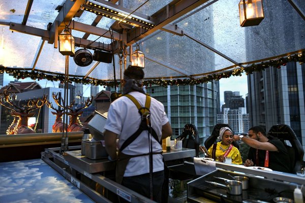 "We have all of our guests having their dinner in the sky (up) 45 metres on Santa's sleigh," restaurant manager Gurjit Singh told AFP.
