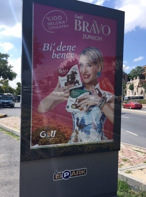 Another interesting coincidence is an ad his sister came across while in Istanbul. The poster says "Bi dene bence," which translates to "I think you should try it once." The ad is about an ice cream containing "100 percent Belgian chocolate."