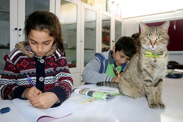 Animals help children's physical and mental development. With animals, children learn to share, love and care for something. Hence, teachers across Turkey, encourage their students to adopt animals, especially cats, in class.