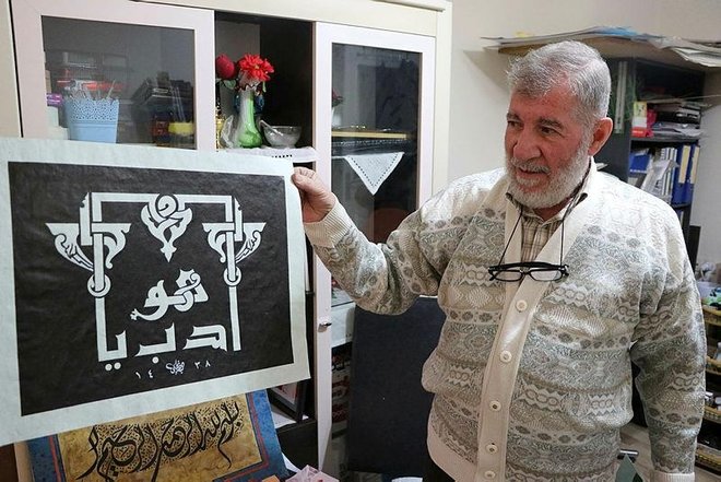 Muhiddin Najib Badenjki, a 70-year-old Syrian from Aleppo, started calligraphy when he was 13 years old.