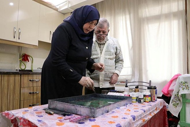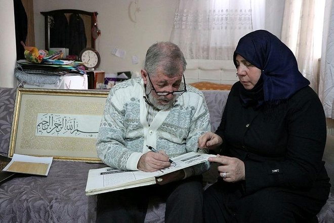 A Syrian couple, who migrated to Turkey and settled in Gaziantep due to the civil war in their country, are trying to make a living from calligraphy.
