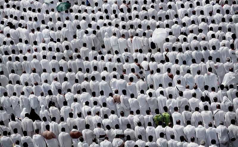 The hajj in Islam is meant to be a great equalizer and unifier among Muslims, with pilgrims shedding overt displays of wealth and materialism. All male pilgrims wear simple terry cloth white garments and women don conservative dress and headscarves, forgoing makeup, nail polish and perfume in an effort to draw closer to God and engage in intense worship for the five-day hajj.