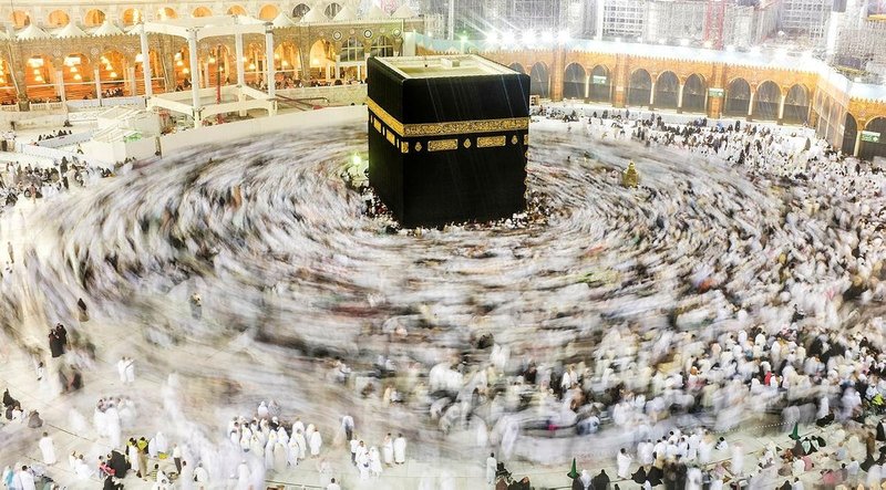 On Friday, thousands of pilgrims circled the cube-shaped Kaaba in Mecca, Islam's holiest site. They circle the Kaaba counter-clockwise, their hearts tilting toward the structure that's meant to symbolize the monotheistic principle of the oneness of God in Islam. Muslims around the world pray toward the Kaaba daily, using compasses to help them pray in its direction.