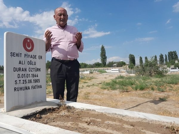 In the 59th year since his father's passing, Halil Öztürk, the 60-year-old son of the martyr, visited his father's grave that he had never seen before. Öztürk, accompanied by Gökhan İpek, who took ownership of the grave, expressed, "When my father became a martyr, I was just one year old. I grew up without knowing what a father is. As I grew, his absence enveloped me. I wished he had at least a grave.