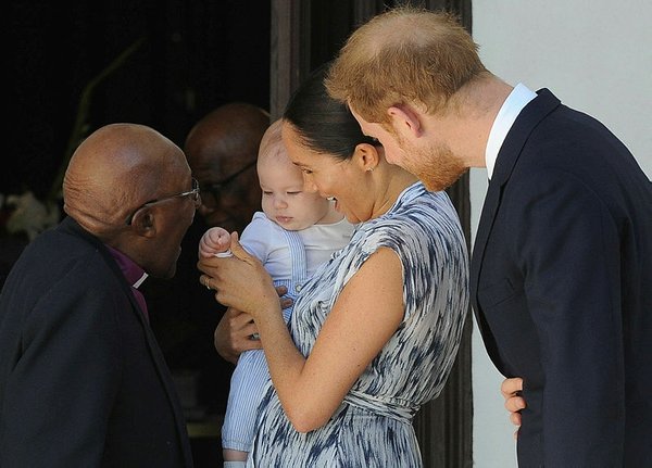 The royal couple posted on social media a photo of the 87-year-old archbishop giving Archie a gentle kiss on the forehead.
