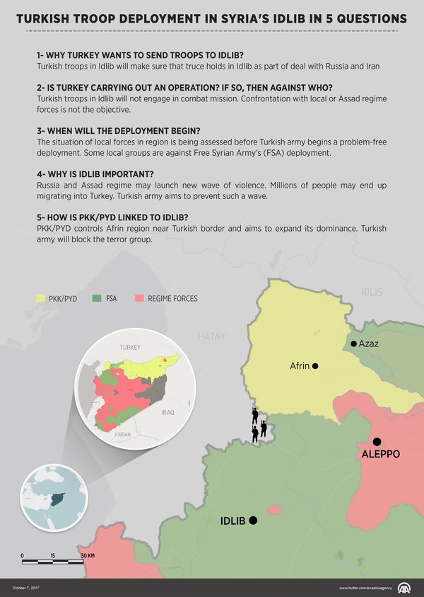 According to the statement on the Turkish Armed Forces' website, the de-escalation zones were created to "enhance effectiveness of the cease-fire regime, end conflicts, bring humanitarian aid to those in need, establish the necessary conditions for the return of those displaced".