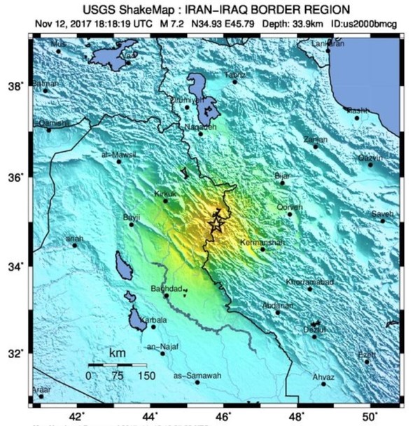 The Iraqi city of Halabja, closest to the epicenter, was the target of a 1988 chemical attack in which Saddam Hussein's troops killed some 5,000 people with mustard gas — the deadliest chemical weapons attack ever against civilians.