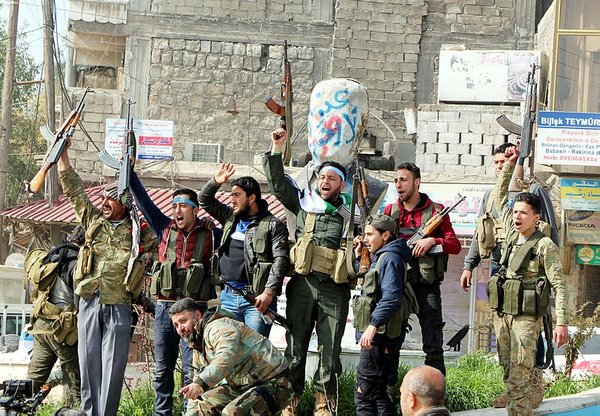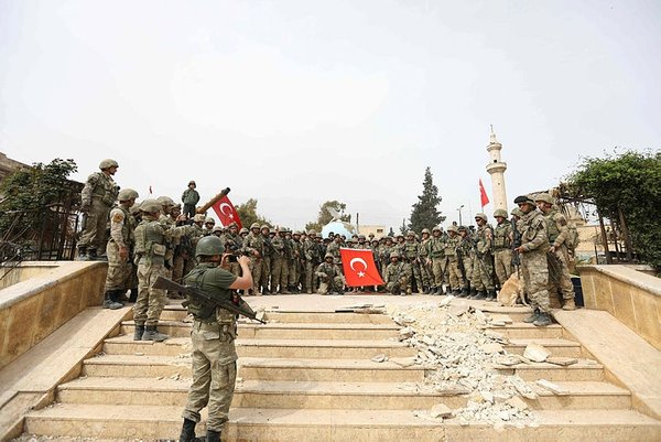 Civilians waved to the Turkish and FSA troops and chanted slogans in their support.