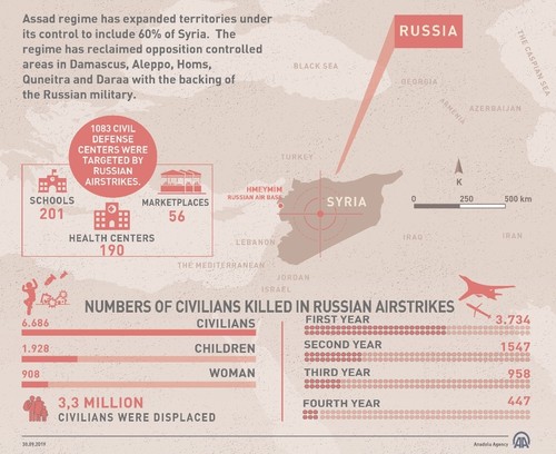 More than 6,686 civilians died and millions were left homeless due to Russia's four-year-long intervention in Syria in support of the Bashar Assad regime.