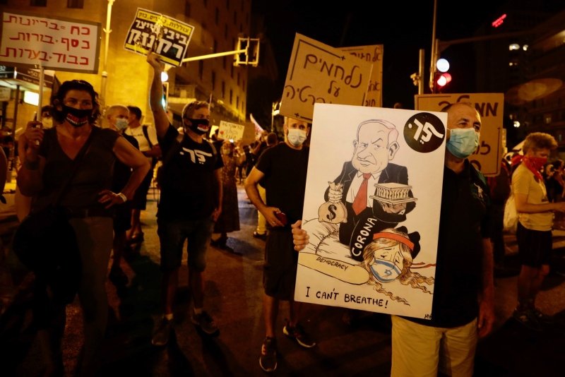 Thousands of Israelis have participated in the protests throughout the summer, calling on Netanyahu to resign while he is on trial for corruption charges and accusing him of bungling the country's coronavirus crisis.